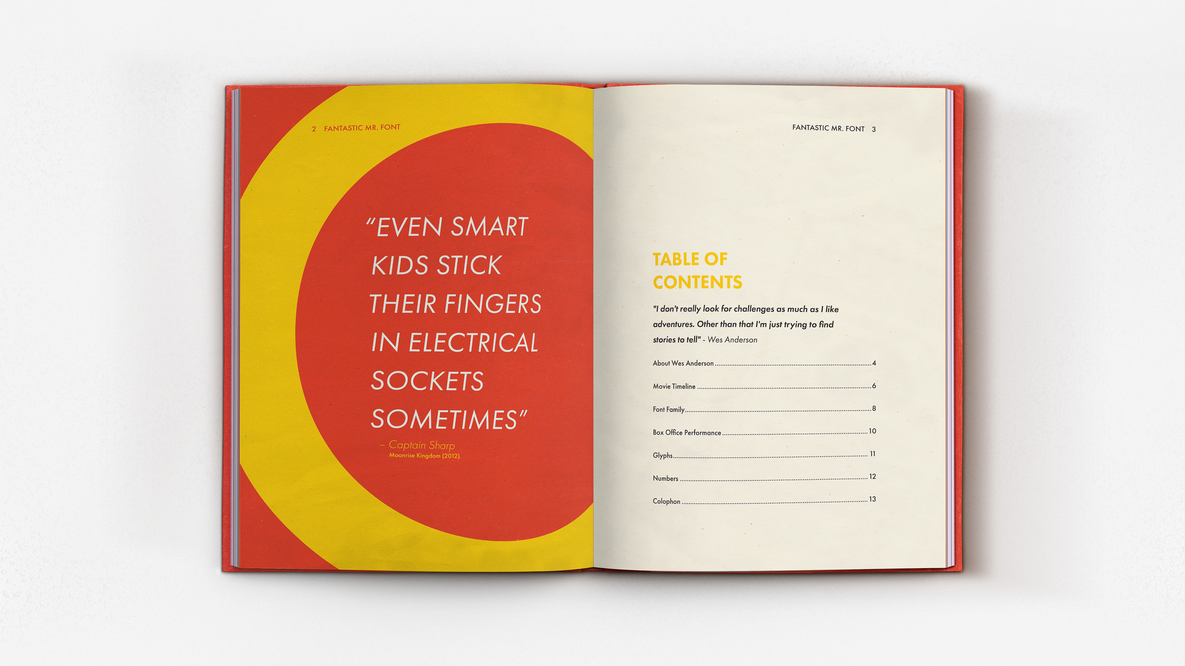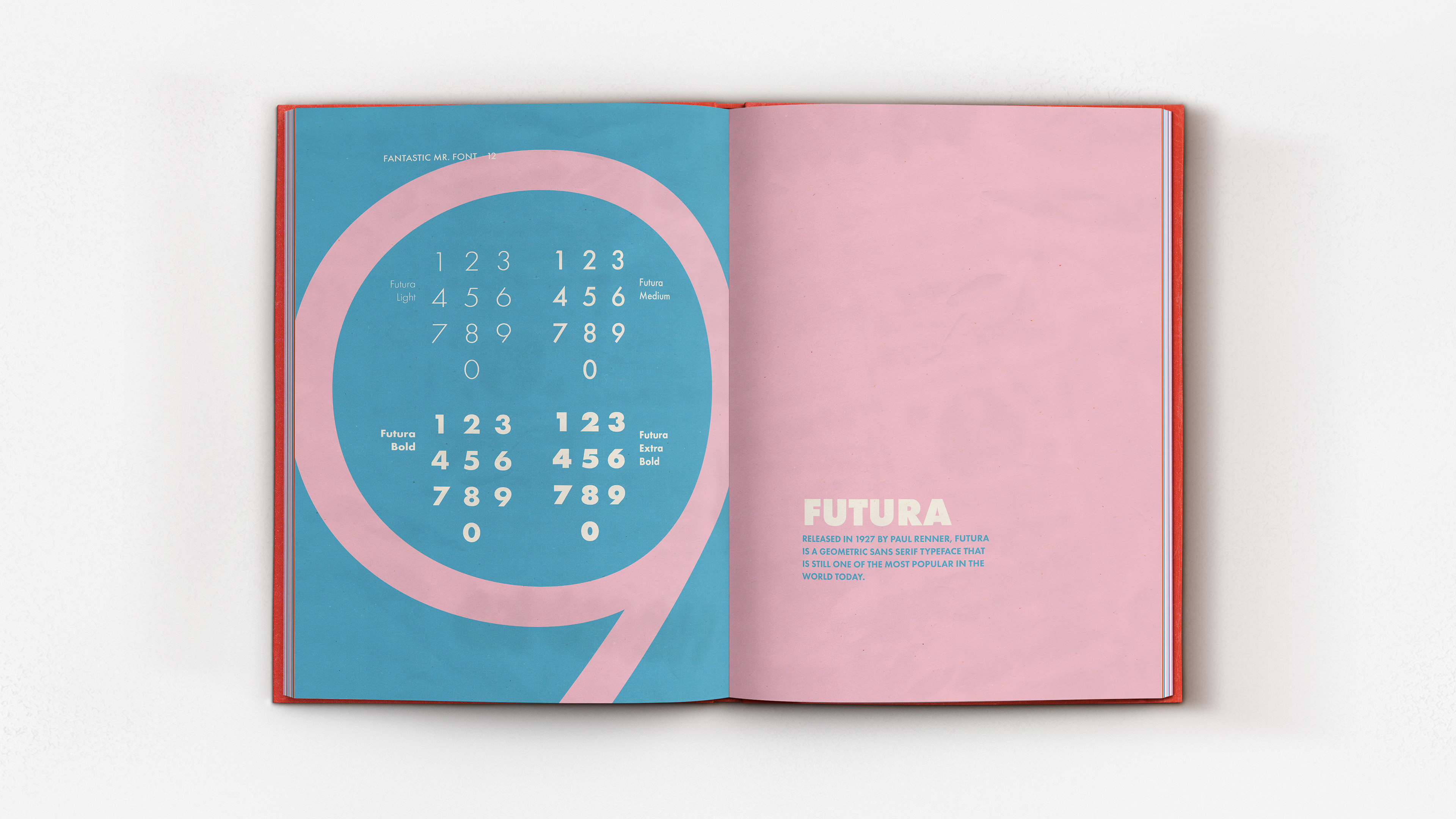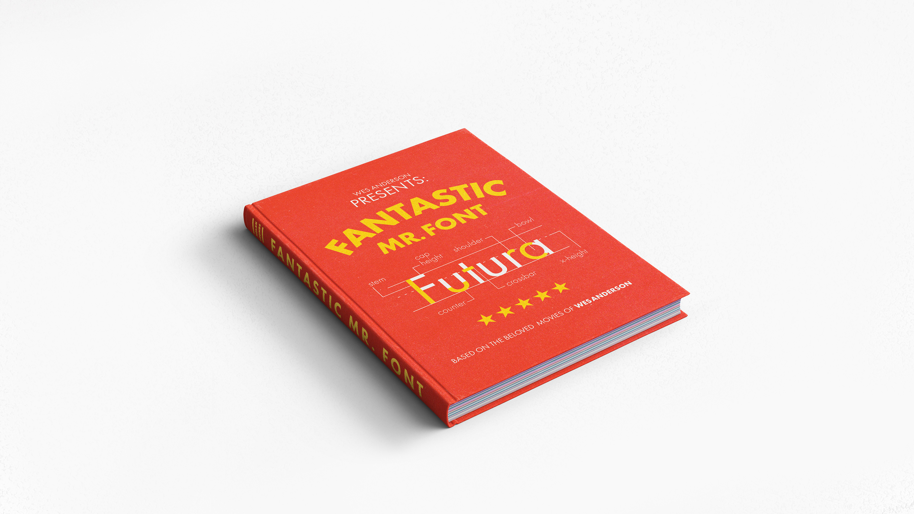 Inspired by Wes Anderson, full book + cover spread showcasing the typeface Futura