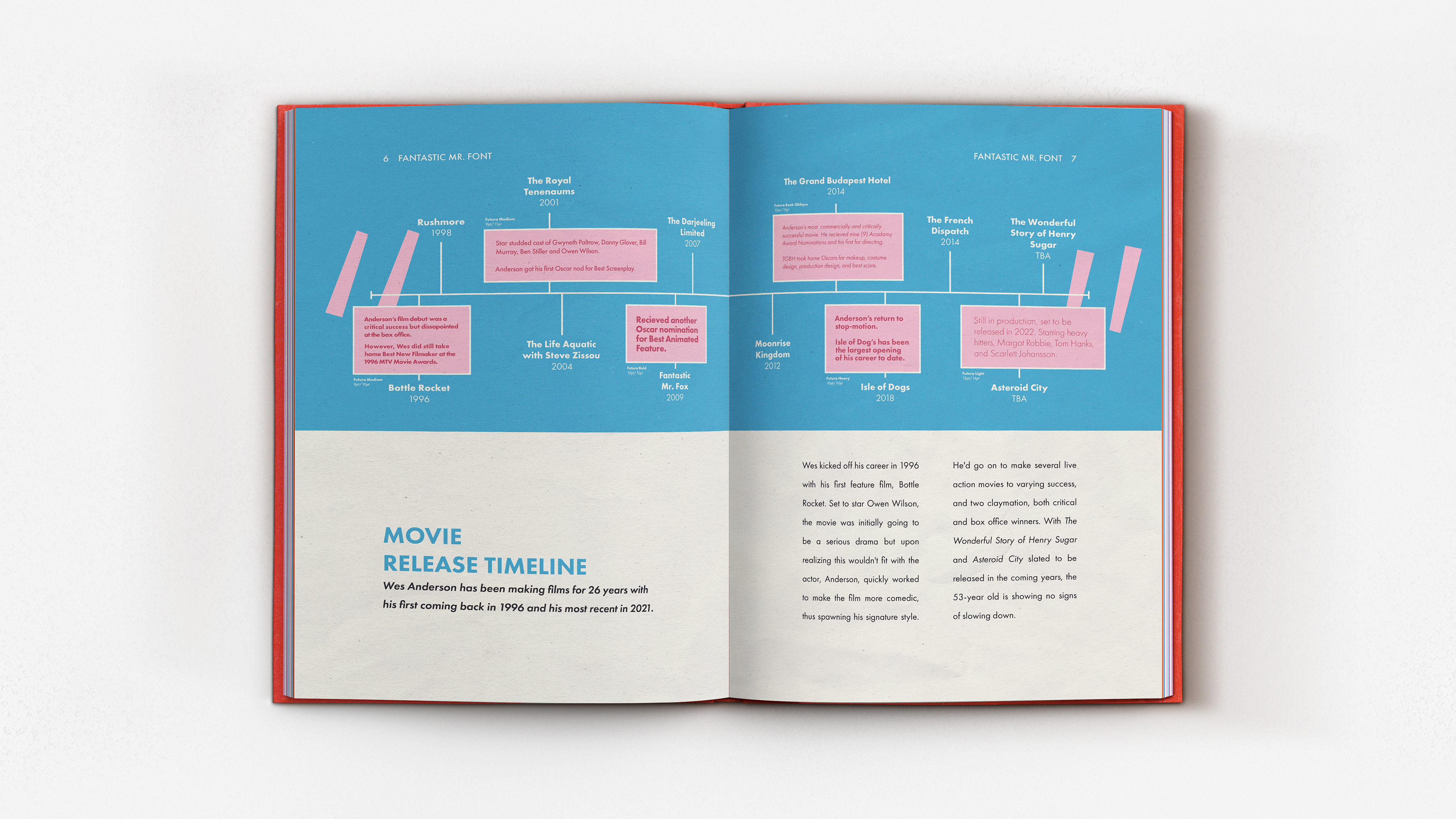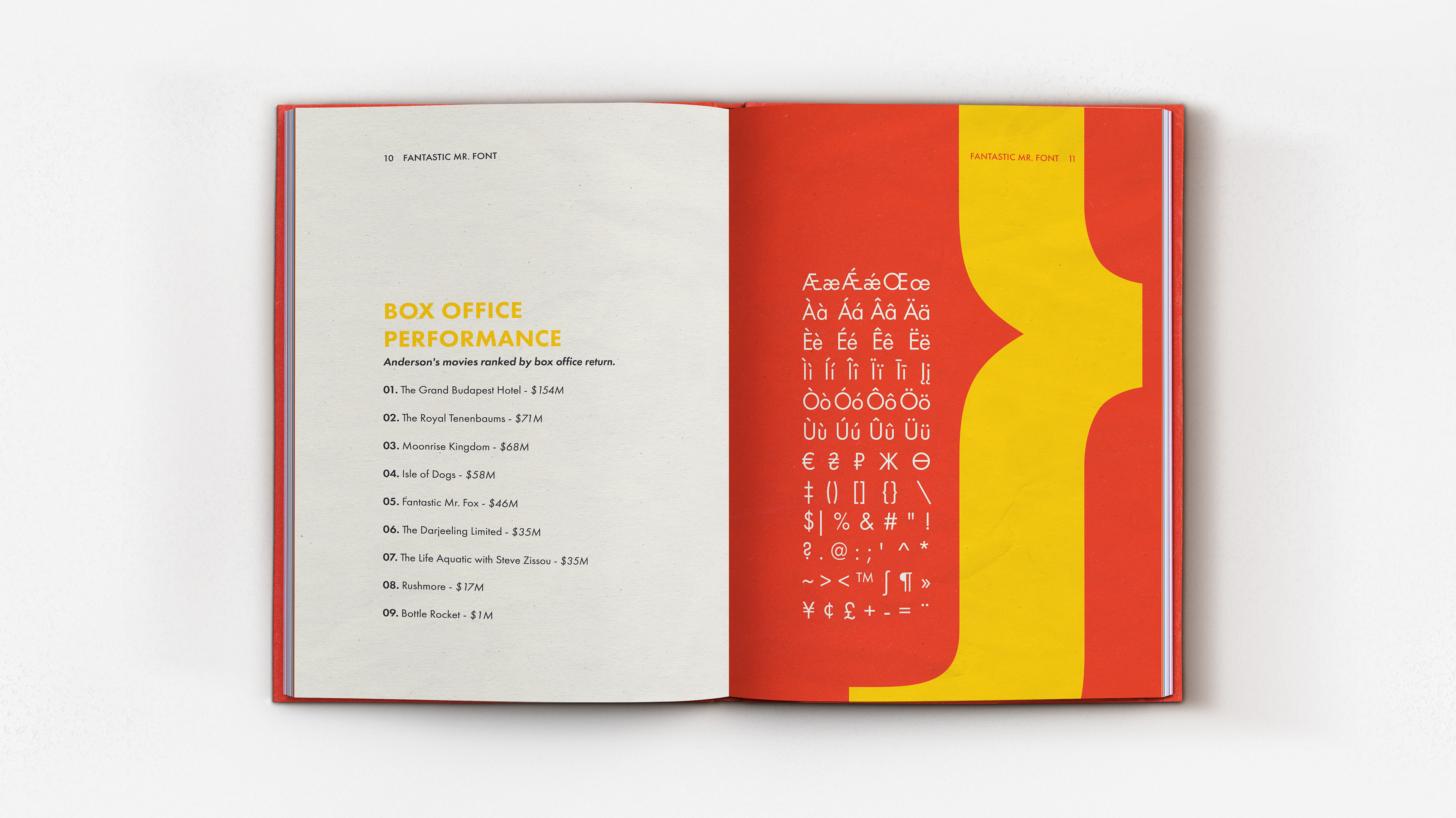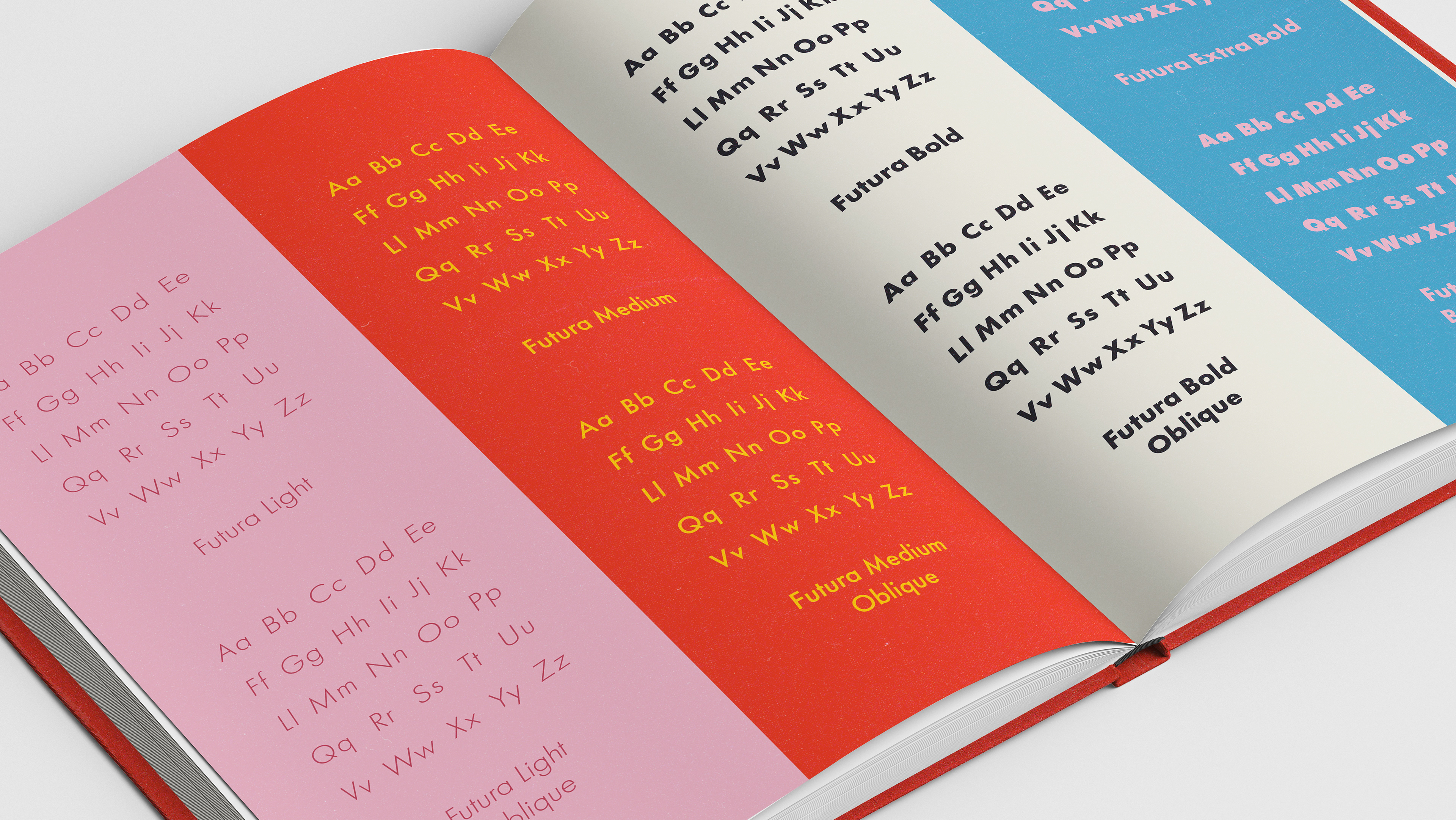 Inspired by Wes Anderson, full book + cover spread showcasing the typeface Futura